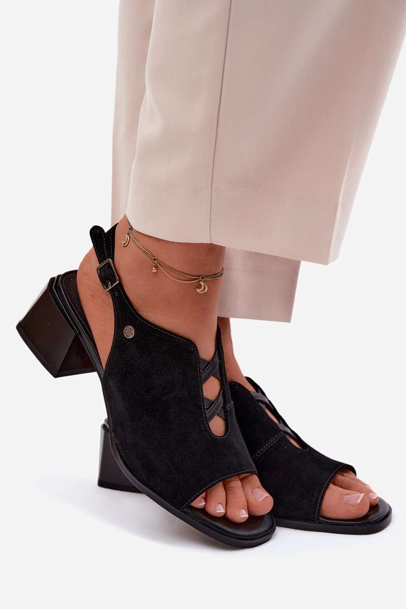 sandalesIeslēgtsturalnego zamšādasu ar papēdi Tā irciejka K7521-01 melnas krāsas