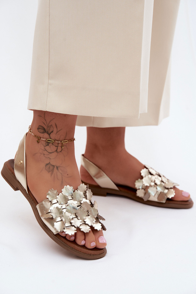 ZazooElegantiškas zelta krāsas sieviešu sandales ar platām papēžiem Zazoo 40468