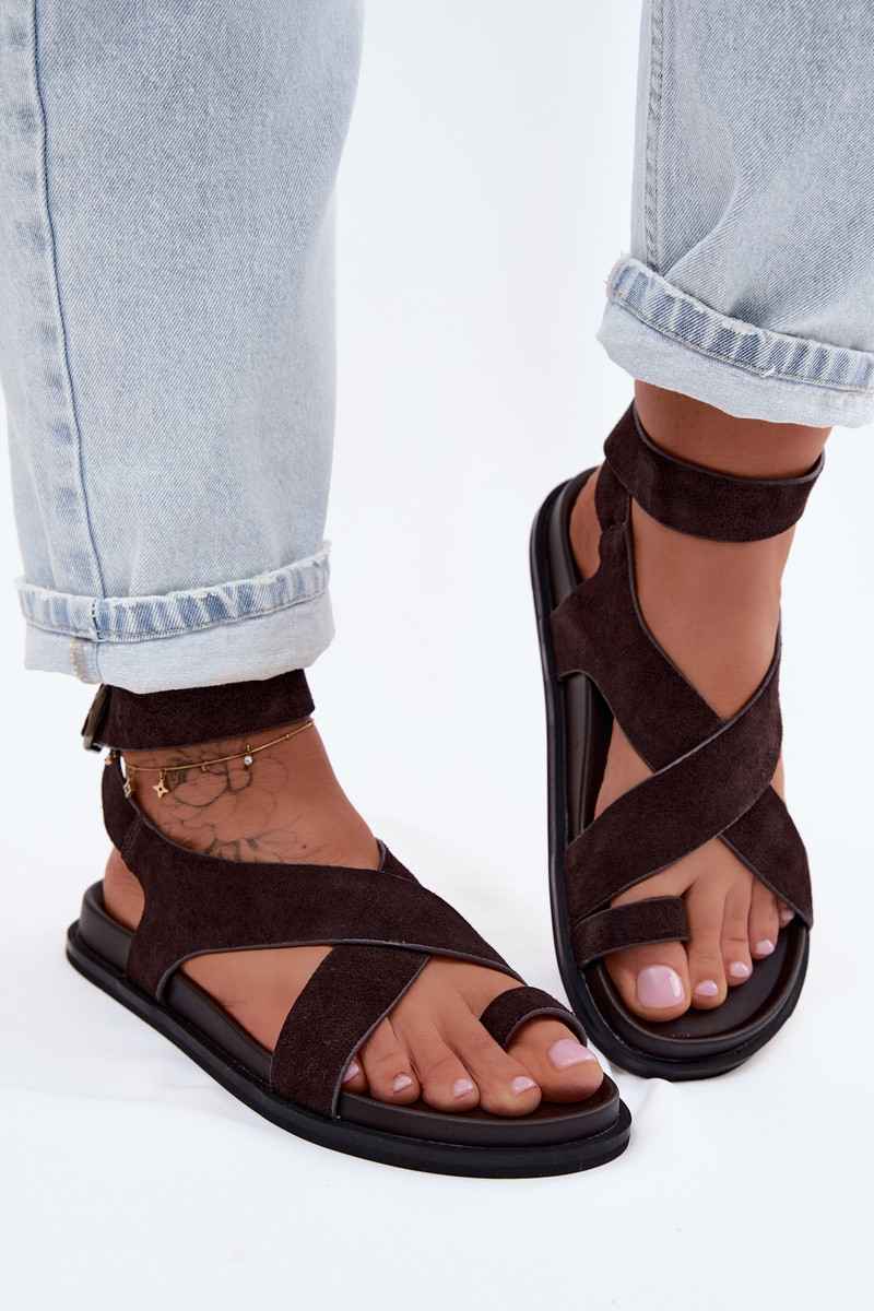 Līdzenas sandales no dabīgās zamšādas D&A CR61-3049 šokolādes krāsā