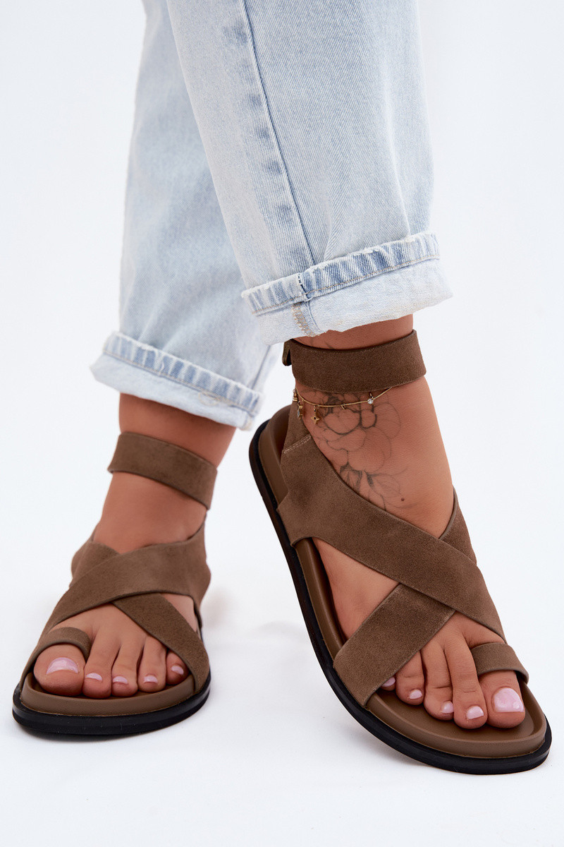 Līdzenas sandales no smilšu mākslīgās zamšādas