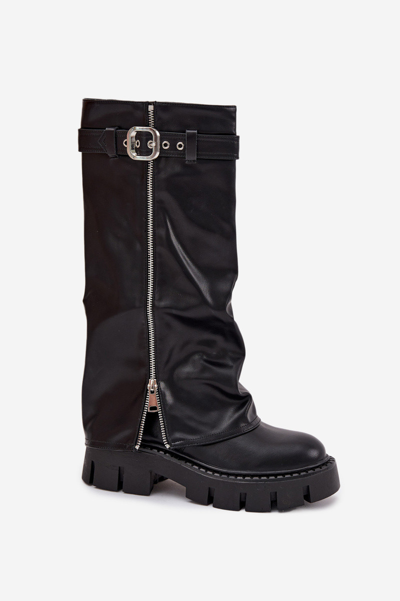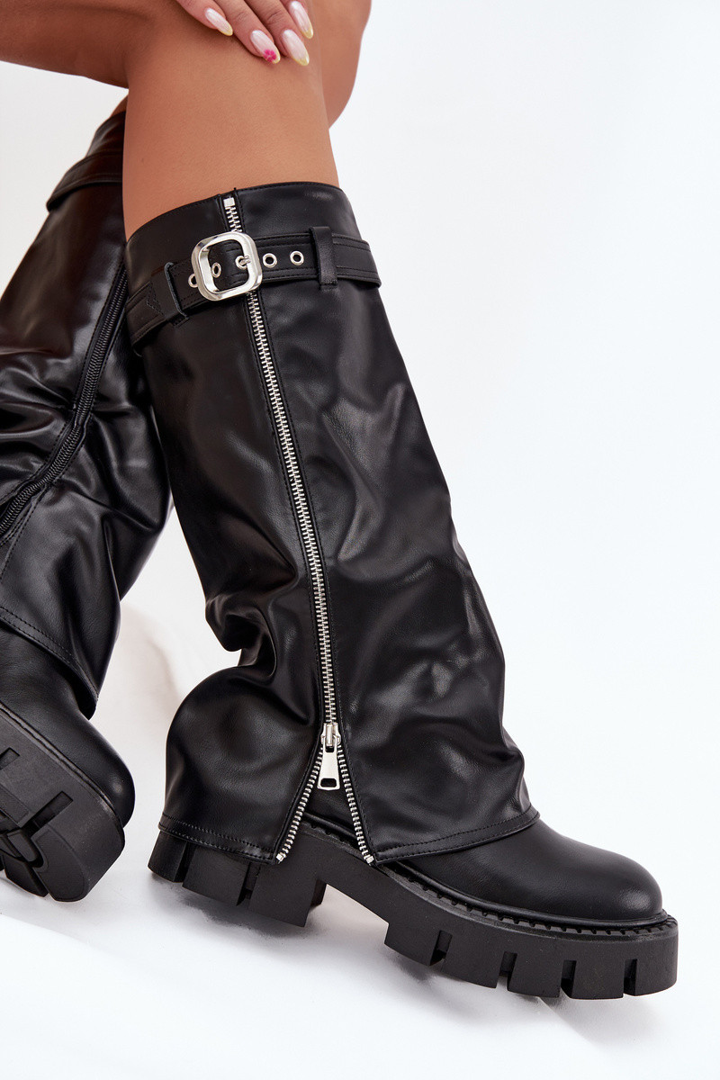 Melnās siltās garie zābaki ar iešūtu choleiku, sprādzēm un sudraba krāsas rāvējslēdzēju Armena