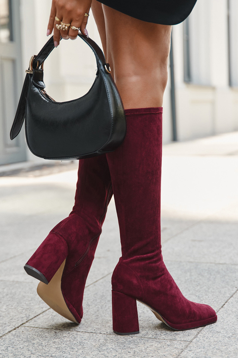 Sieviešu garie zābaki ar šuvēm uz stabiņa papēža bordo krāsā "Brivana"