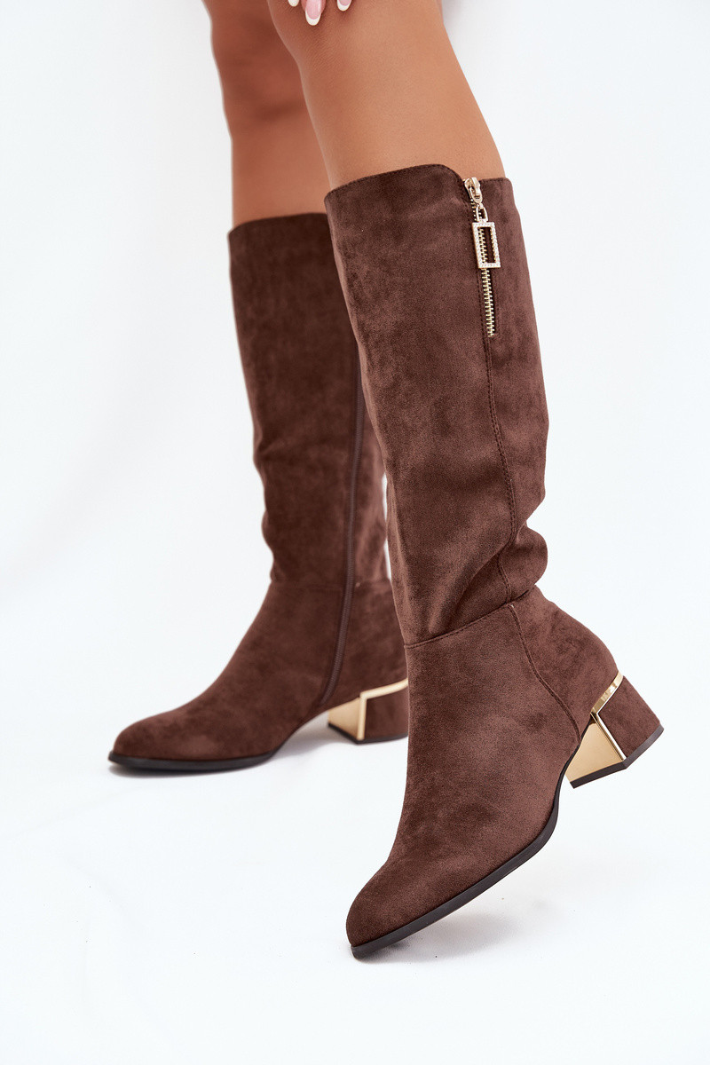Sieviešu garie zābaki ar papēžiem no eko zamšas brūnā krāsā Lyvienne