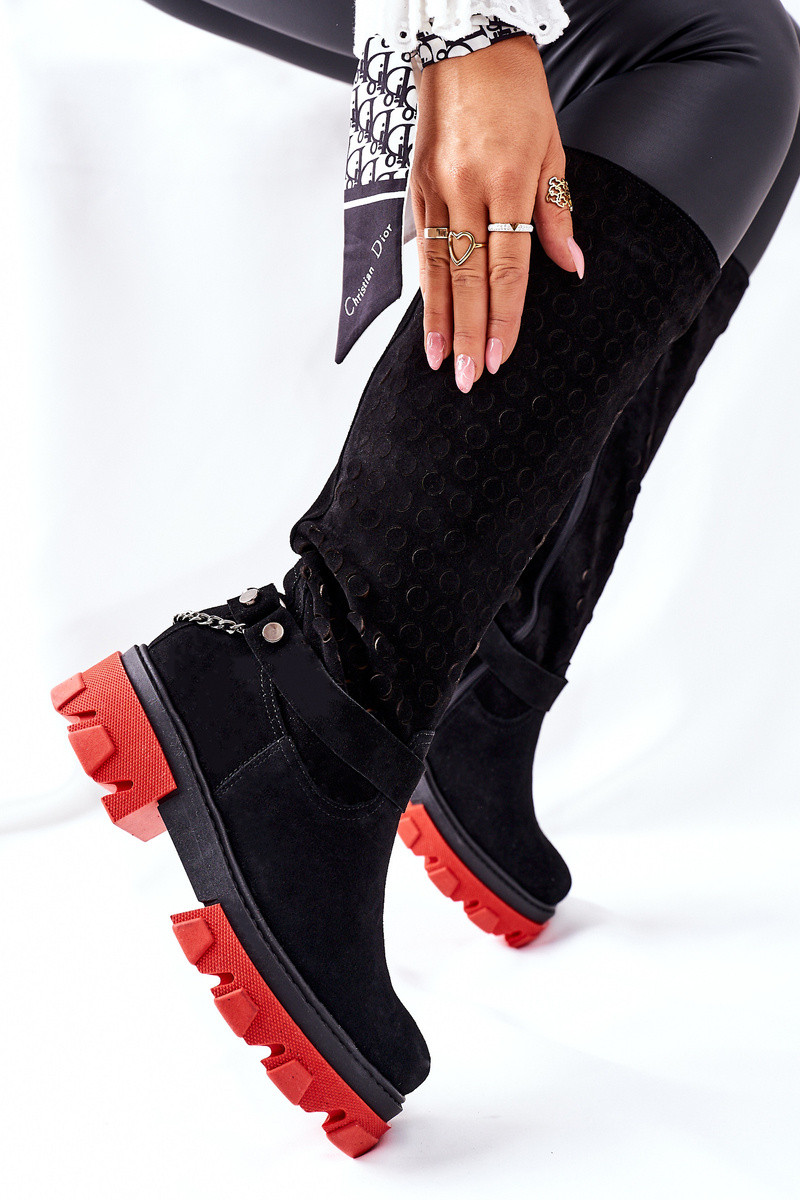 Sieviešu ādas melni zamša gari zābaki LeĮskis 2866