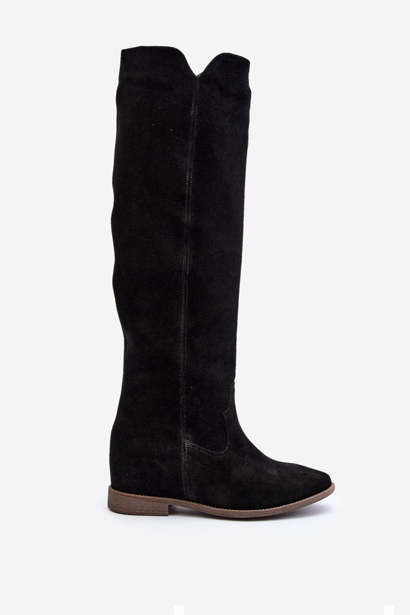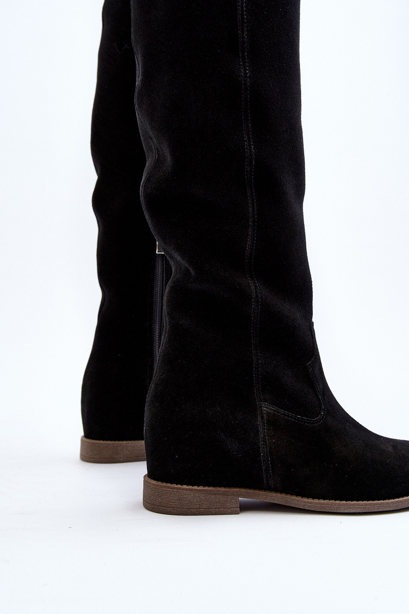 Melni zamša ilgi zābaki līdz ceļiem ar platām papēžiem „Zazoo 3407"