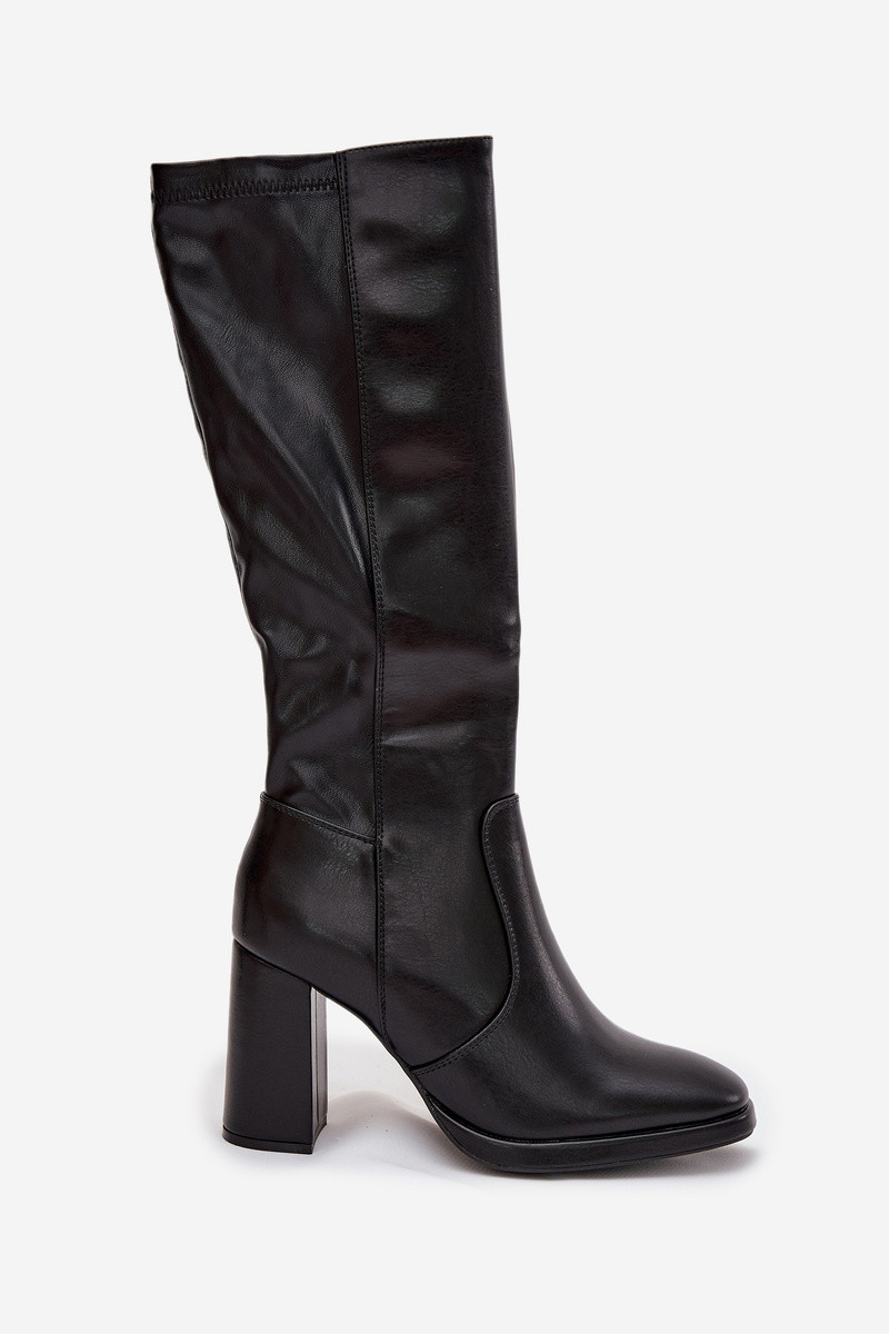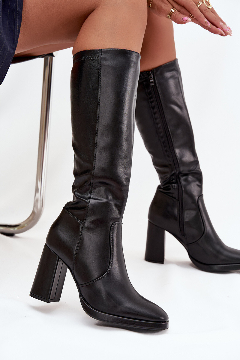 Melnas krāsas sieviešu siltie garie zābaki ar papēžiem no eko ādas Lyvella