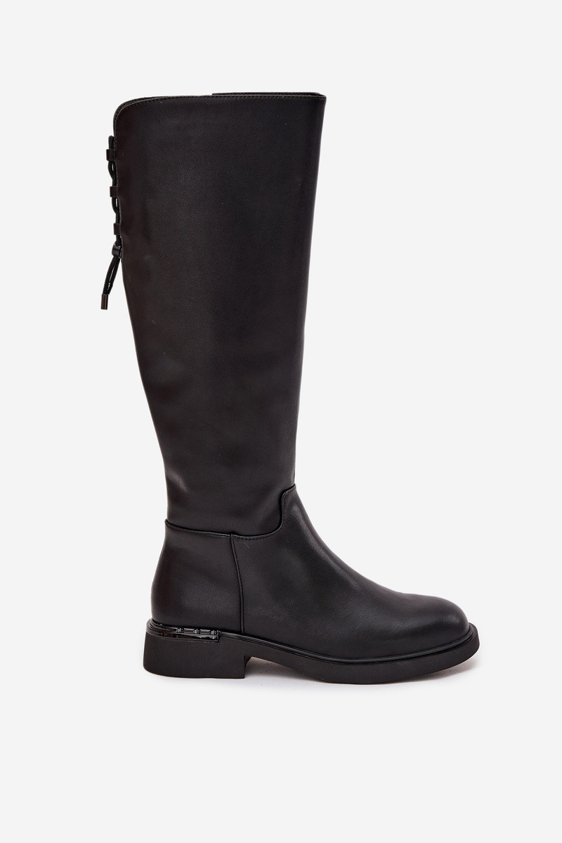 Siltināti sieviešu augstie zābaki no dabiskās ādas ar platām papēžiem Vinceza 66822 melnā krāsā