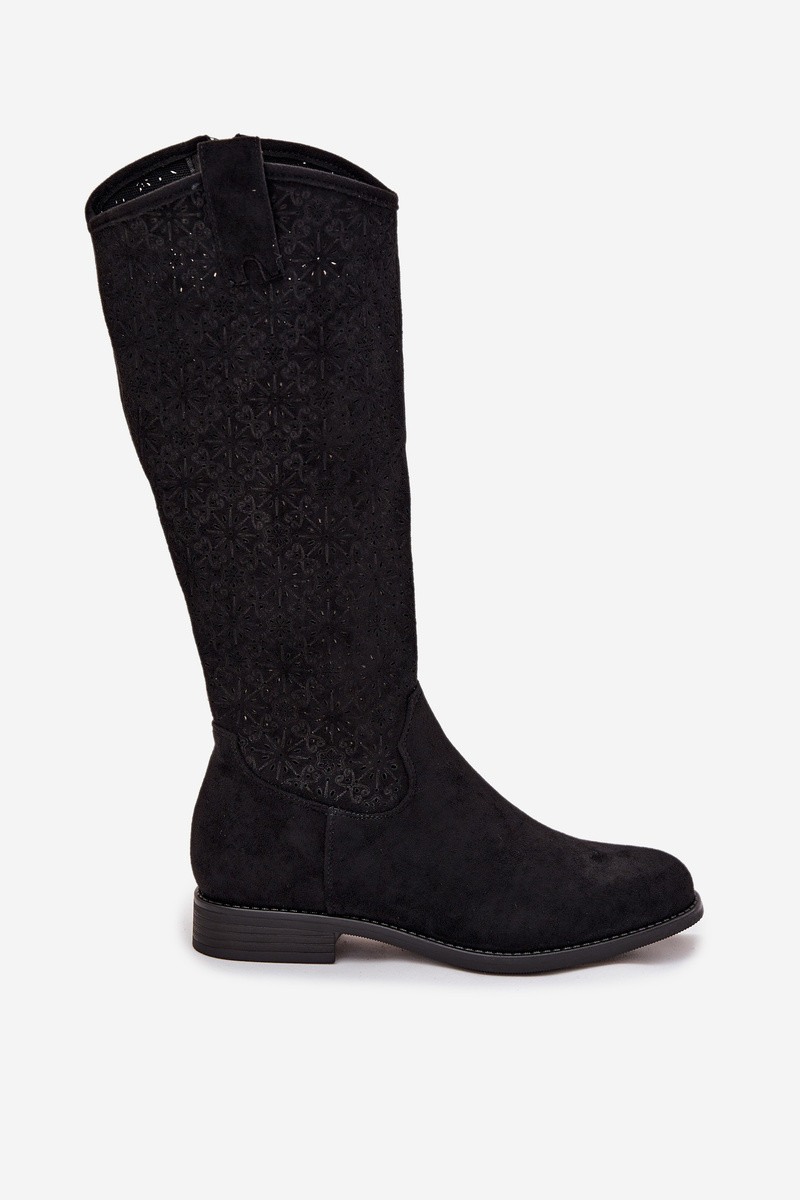 sieviešu garie zābaki Ažūrs ar platiem papēžiem S.Barski HY52-534 melnas krāsas