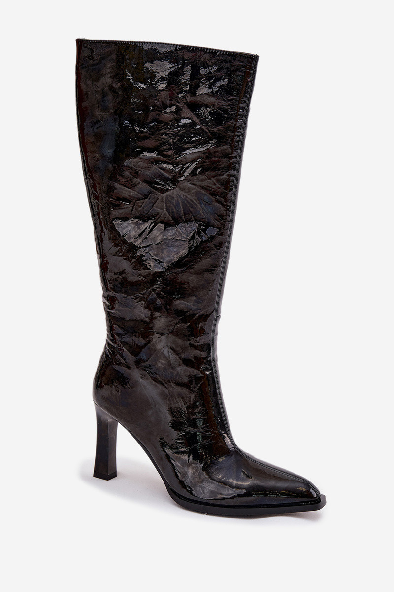 Āda Laque sieviešu garie zābaki ar papēdi siltināti D&A CR52-716 melnas krāsas