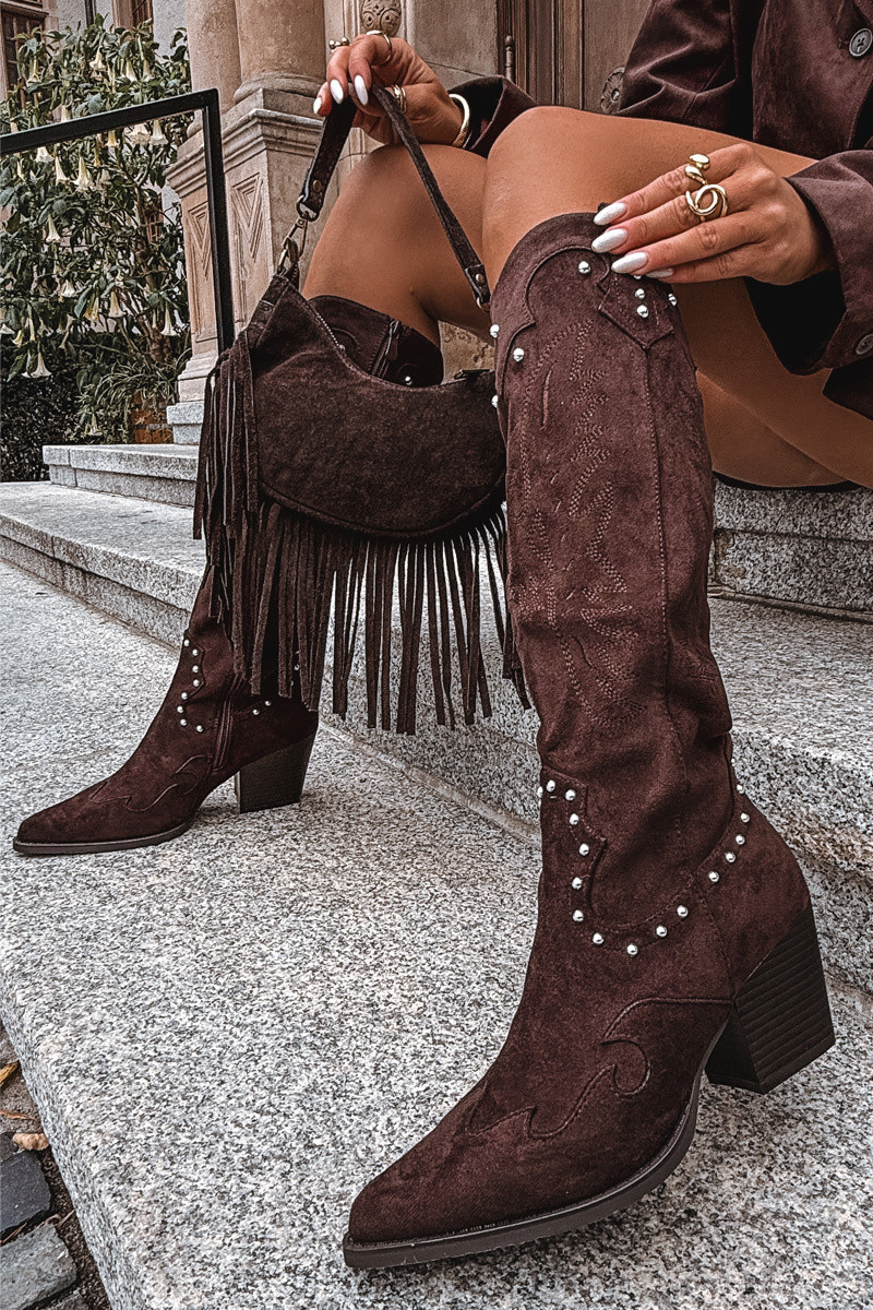 Sieviešu garie zābaki Kovboju zābaki Ar Dekorāciju ar papēdi CzekoladoIne Darella