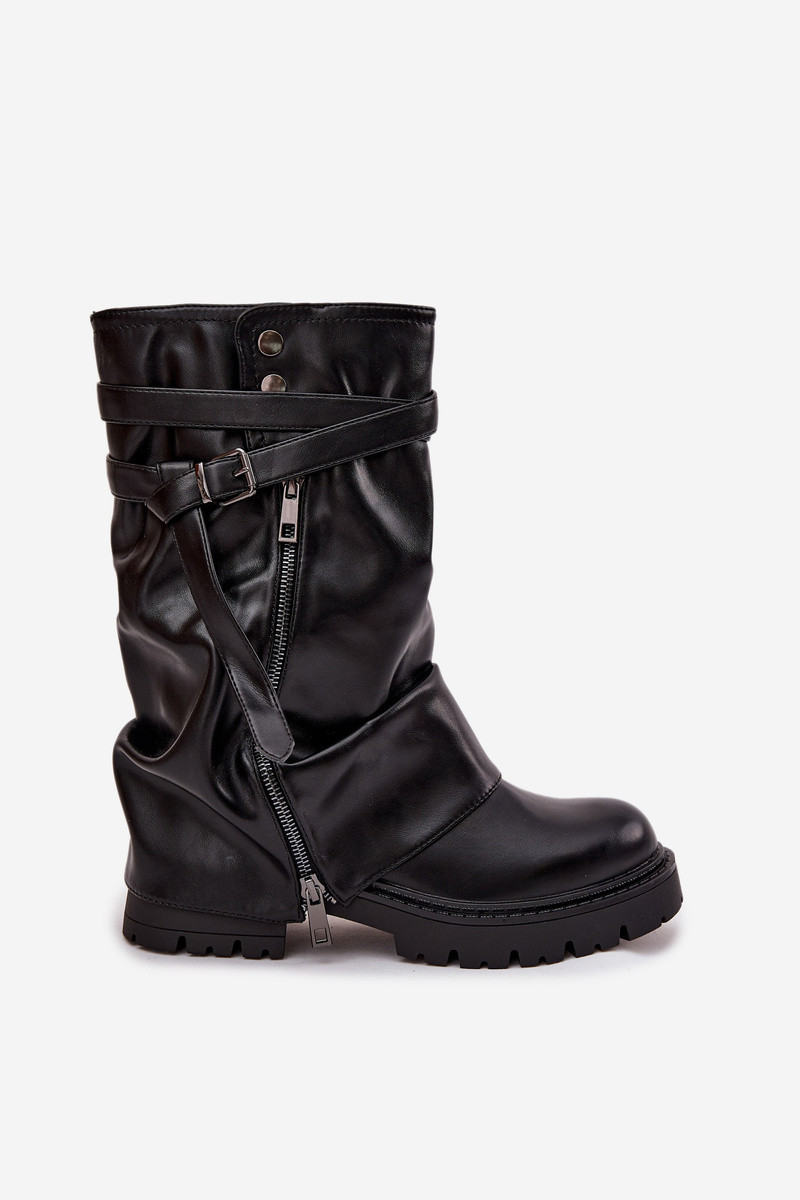 Sieviešu garie zābaki ar iepresētu potīti, vidus apakšstilbam ar siksnām melnā krāsā Darisa
