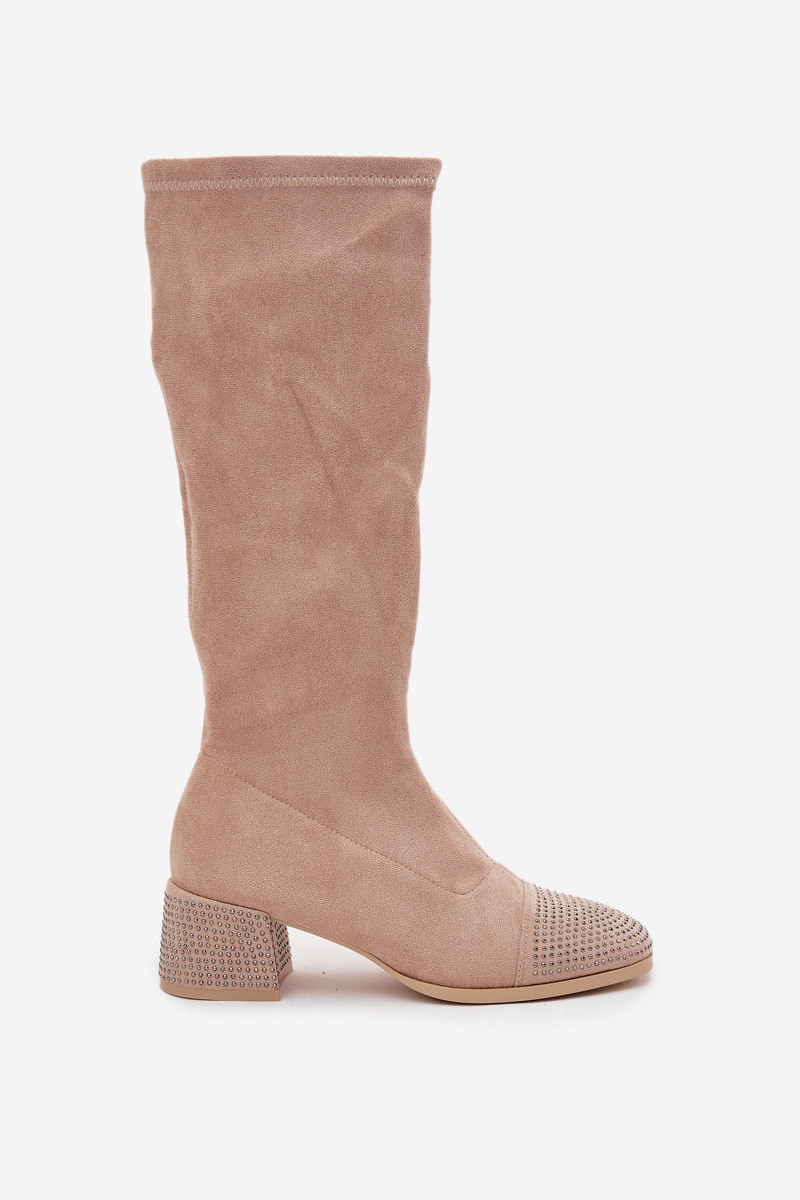 Sieviešu garie zābaki ar dekorāciju Klocke no mākslīgā zābaka smilšu krāsā Ivanna