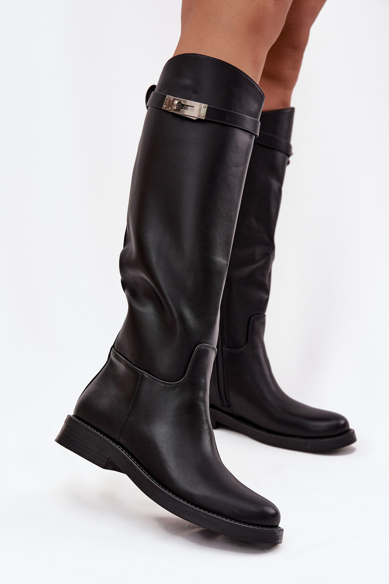 sieviešu garie zābaki ar dekorētiem papēžiem Eko Āda melnas krāsas Palisse