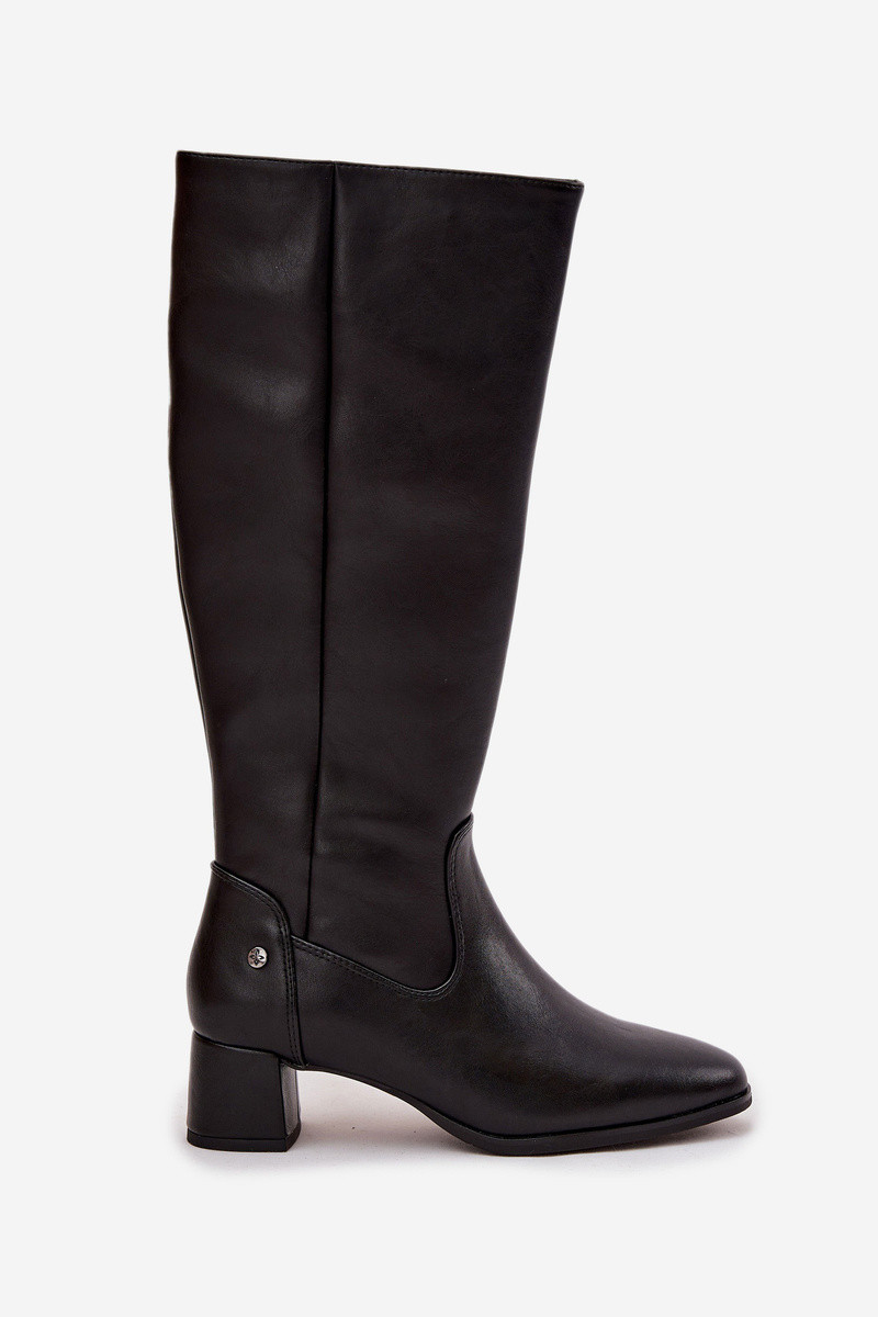 Āda siltināti sieviešu garie zābaki ar papēdi Tā irciejka A7165-01 melnas krāsas