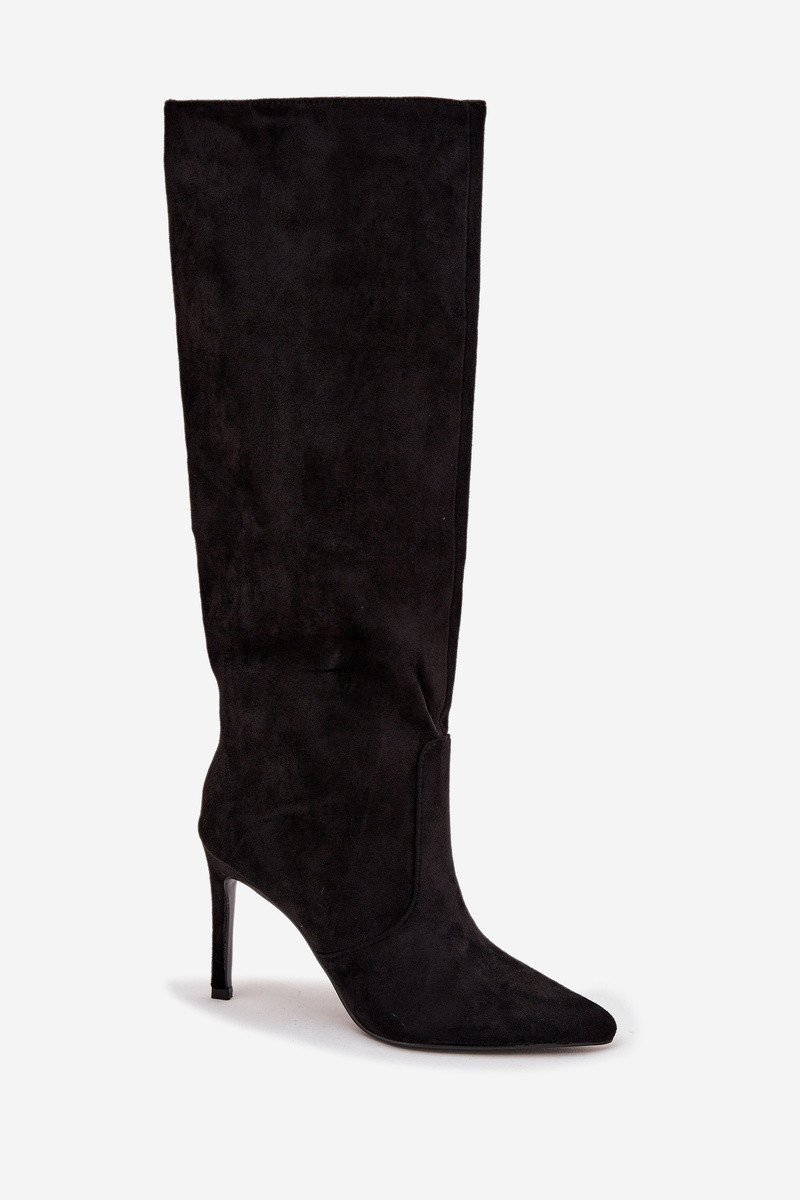 Rosavine melna krāsas siltināti sieviešu garie zābaki ar plāniem papēžiem no mākslīgās zamšas