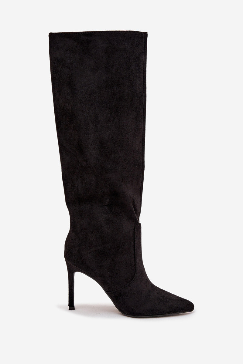 siltināti sieviešu garie zābaki ar papēdiEko zamšādau melnas krāsas Rosavine