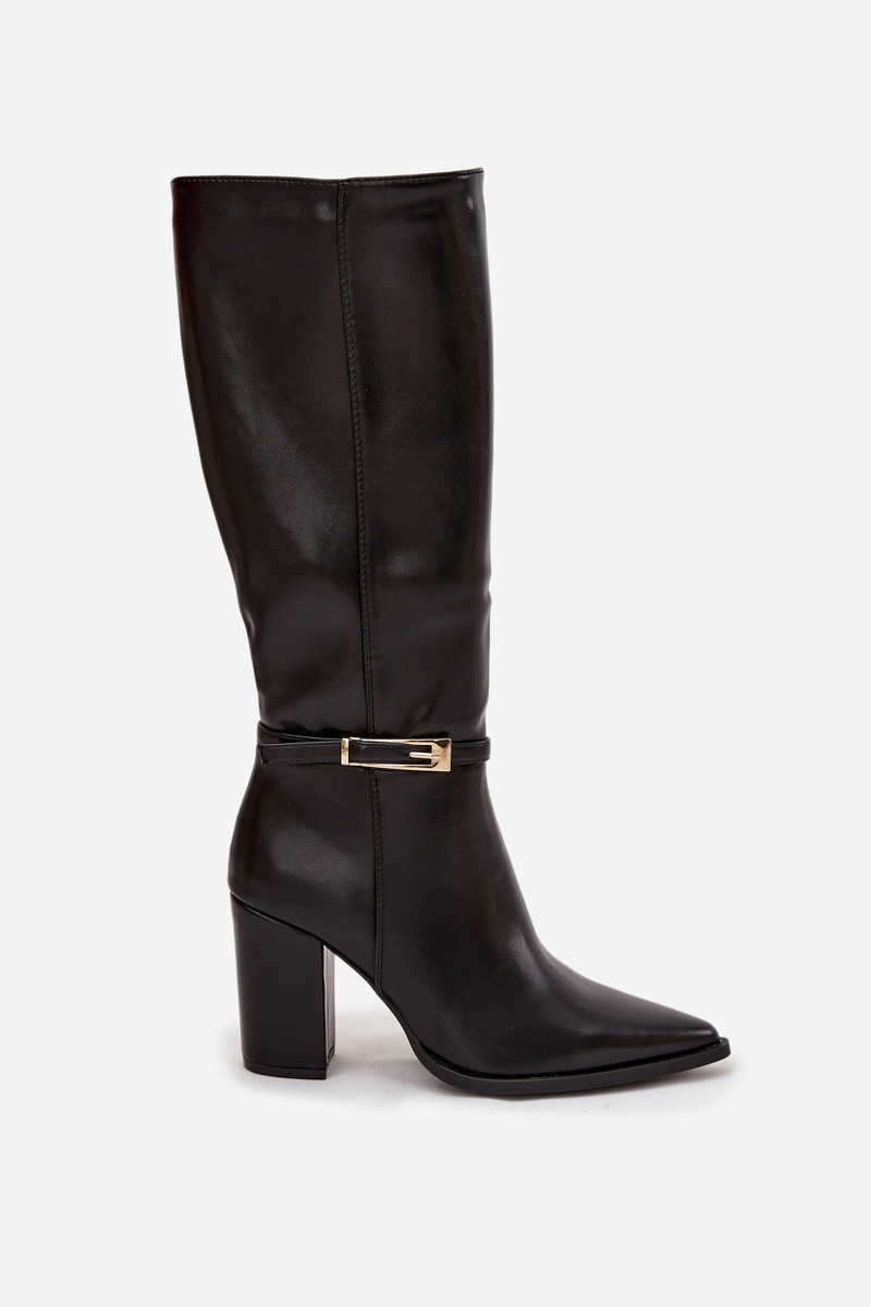 sieviešu garie zābaki ar papēdi ar sprādzēm siltināti melnas krāsas Cirella