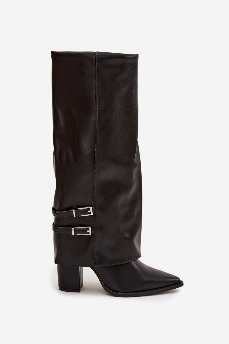 sieviešu garie zābaki ar papēdiINyIniniętą CholeInką I ar sprādzēmmi melnas krāsas