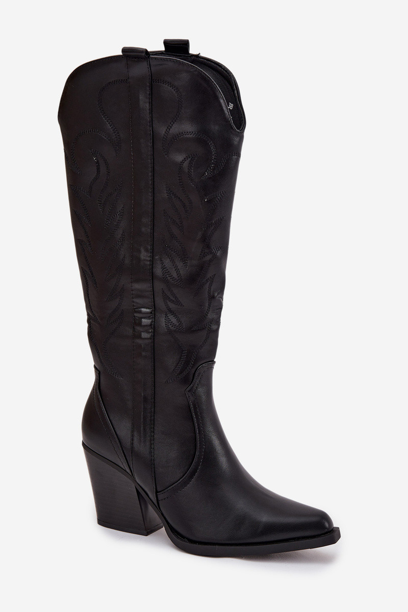 Garie siltināti zābaki kovboju stilā ar papēžiem no mākslīgās ādas melnā krāsā "Zareen"