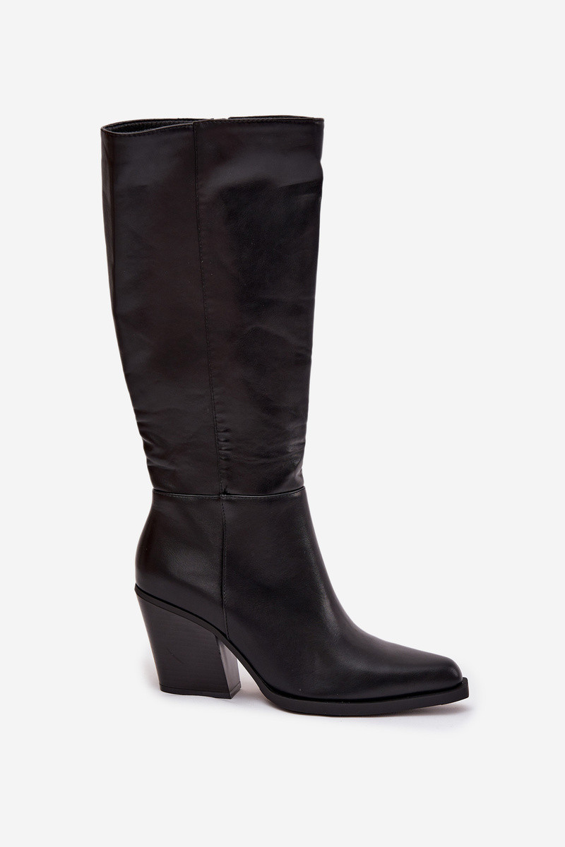 Sieviešu garie zābaki ar papēžiem, siltināti, melnā krāsā Katelle
