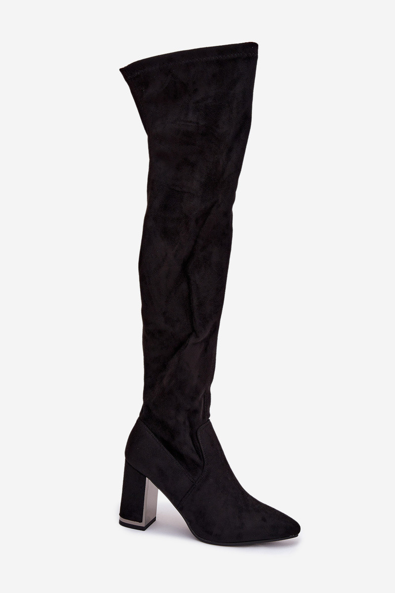 sieviešu garie zābaki Eko zamšādaoIne Par ceļgalu ar papēdi melnas krāsas Thamine