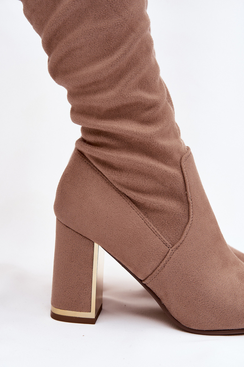 Smilšu krāsas sieviešu virs ceļgaliem garie zābaki ar papēžiem no mākslīgā zamša Thamine