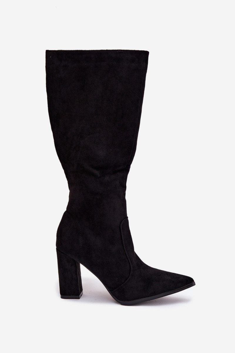 sieviešu garie zābaki ar papēdiEko zamšādau siltināti melnas krāsas Ieslēgtsrille