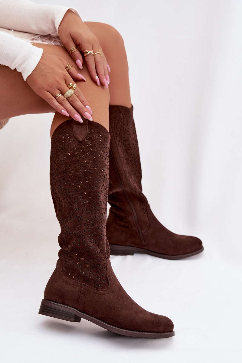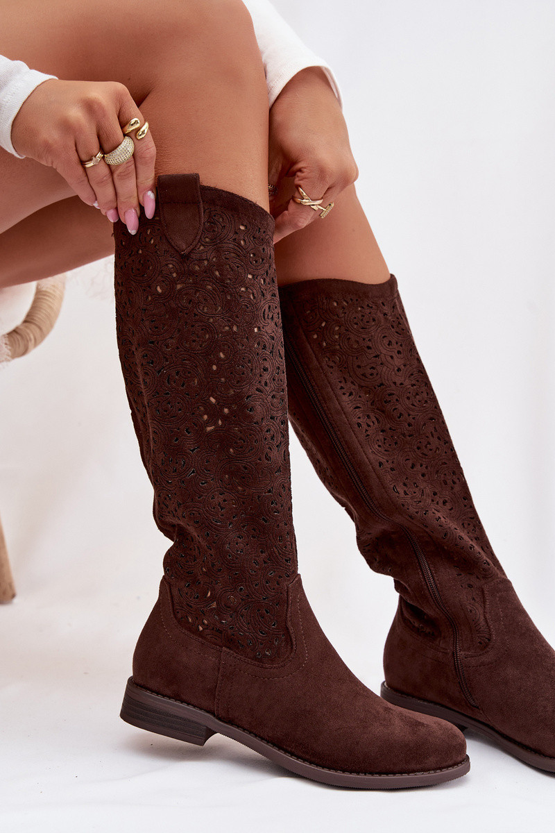 Ažūrs sieviešu garie zābaki ar platiem papēžiem S.Barski HY61-8023 CzekoladoIne