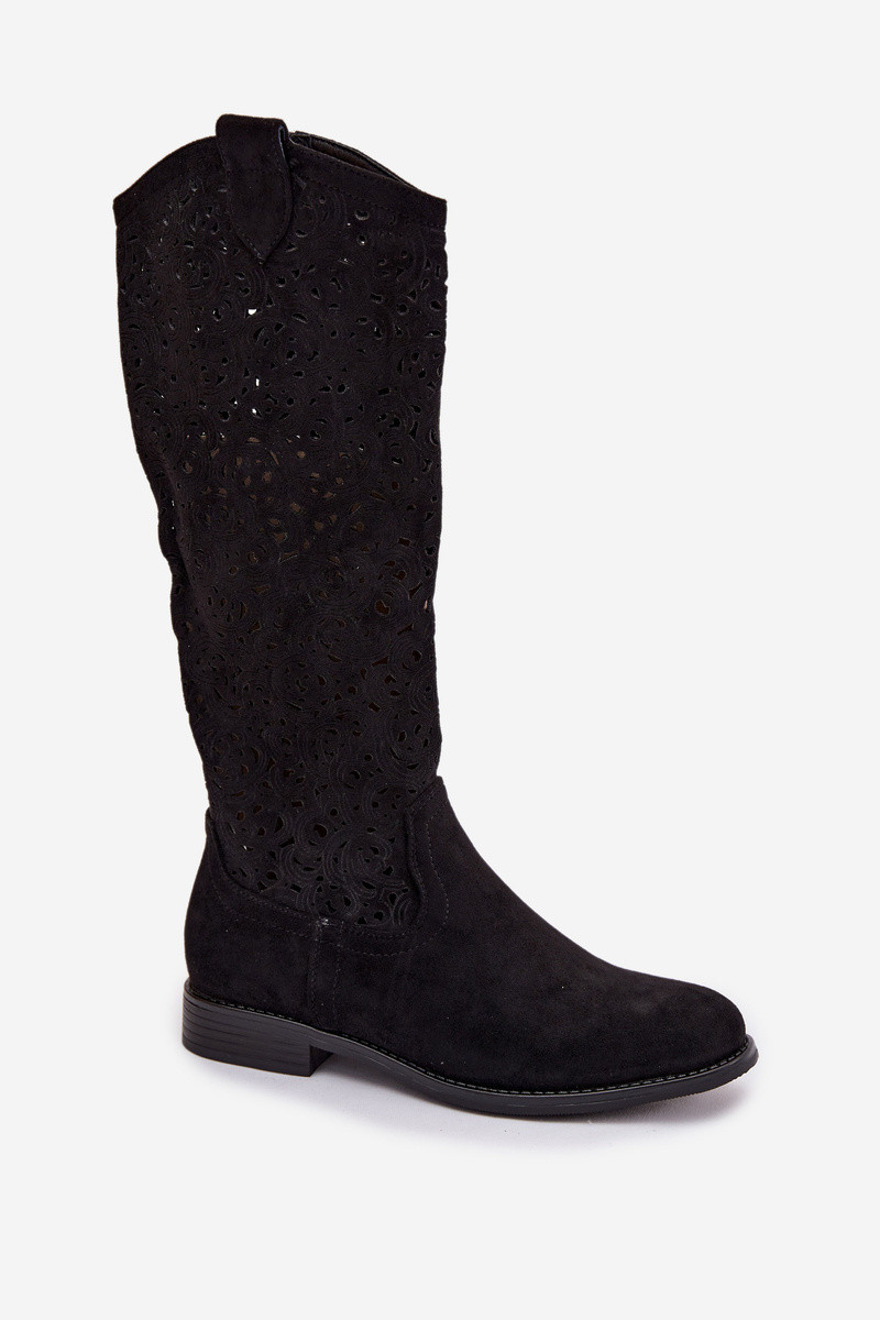 Ažūrs sieviešu garie zābaki ar platiem papēžiem S.Barski HY61-8023 melnas krāsas