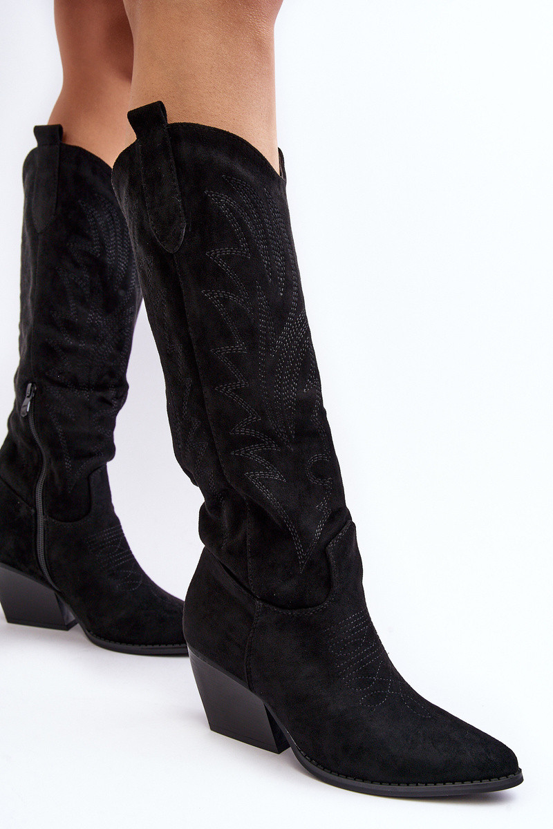Sieviešu garie zābaki Kovboju zābaki ar papēdi melnas krāsas Sloana