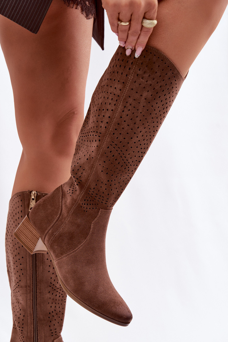 Sieviešu garie zābaki ar ažūriem elementiem uz zema papēža Vinceza 58637 brūnas krāsā