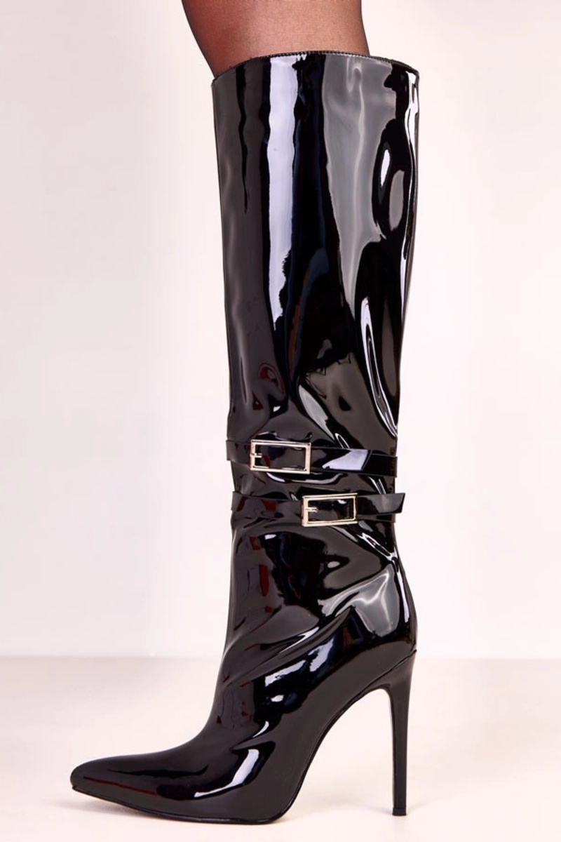 Melni lakoti ilgi zābaki ar dekoratīvu sprādzi Asheris