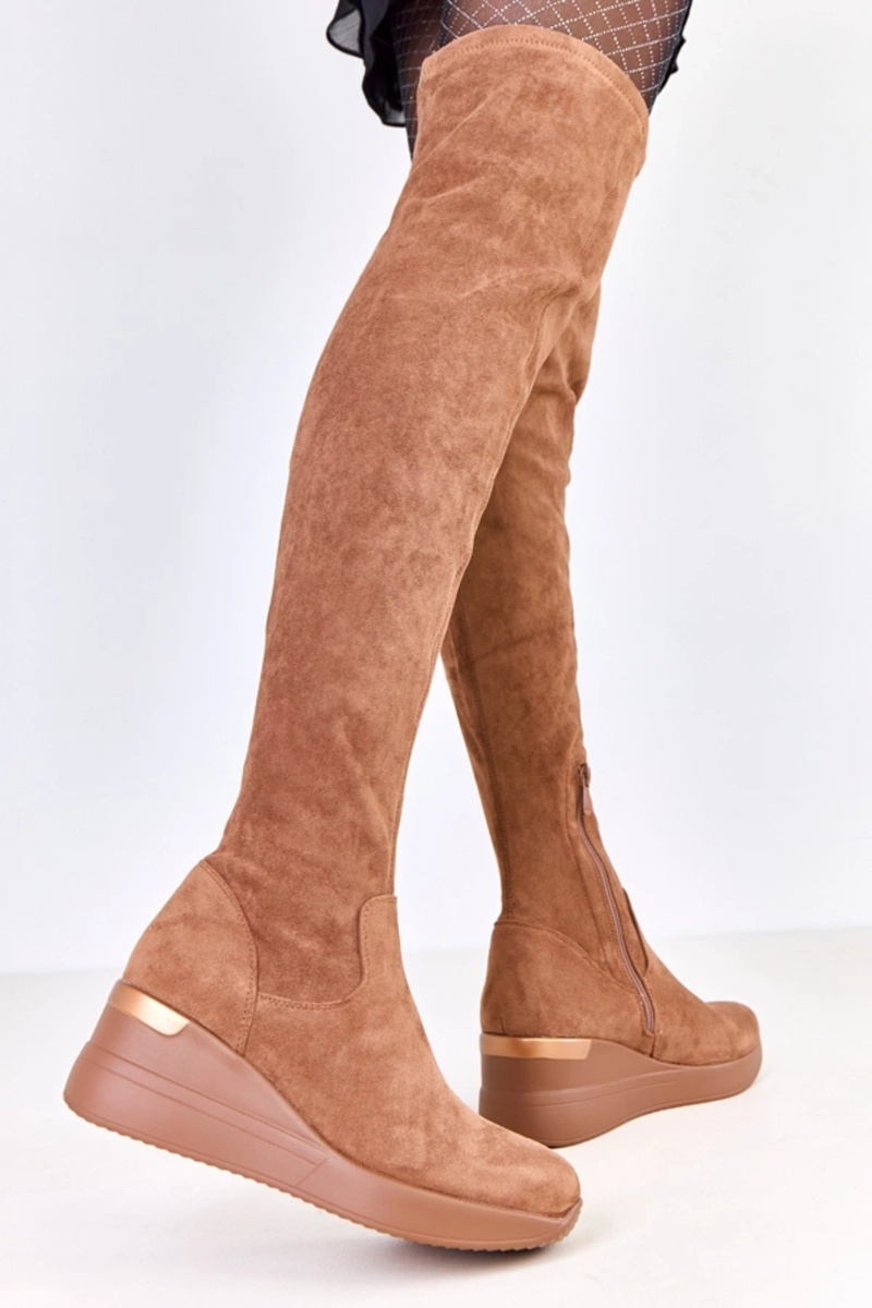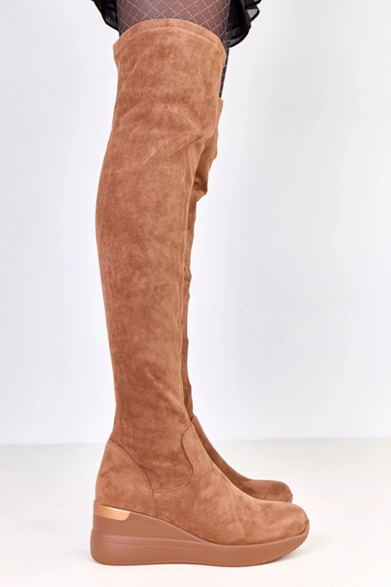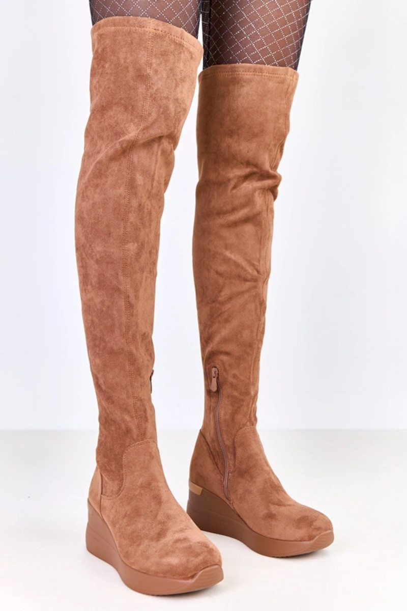 Brūni mākslīgā zamša zābaki uz platformas Roland