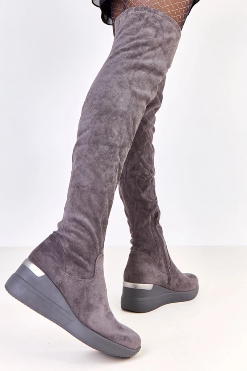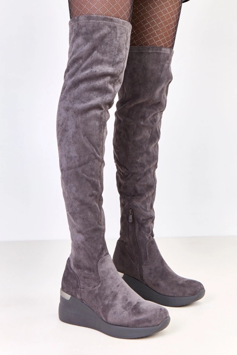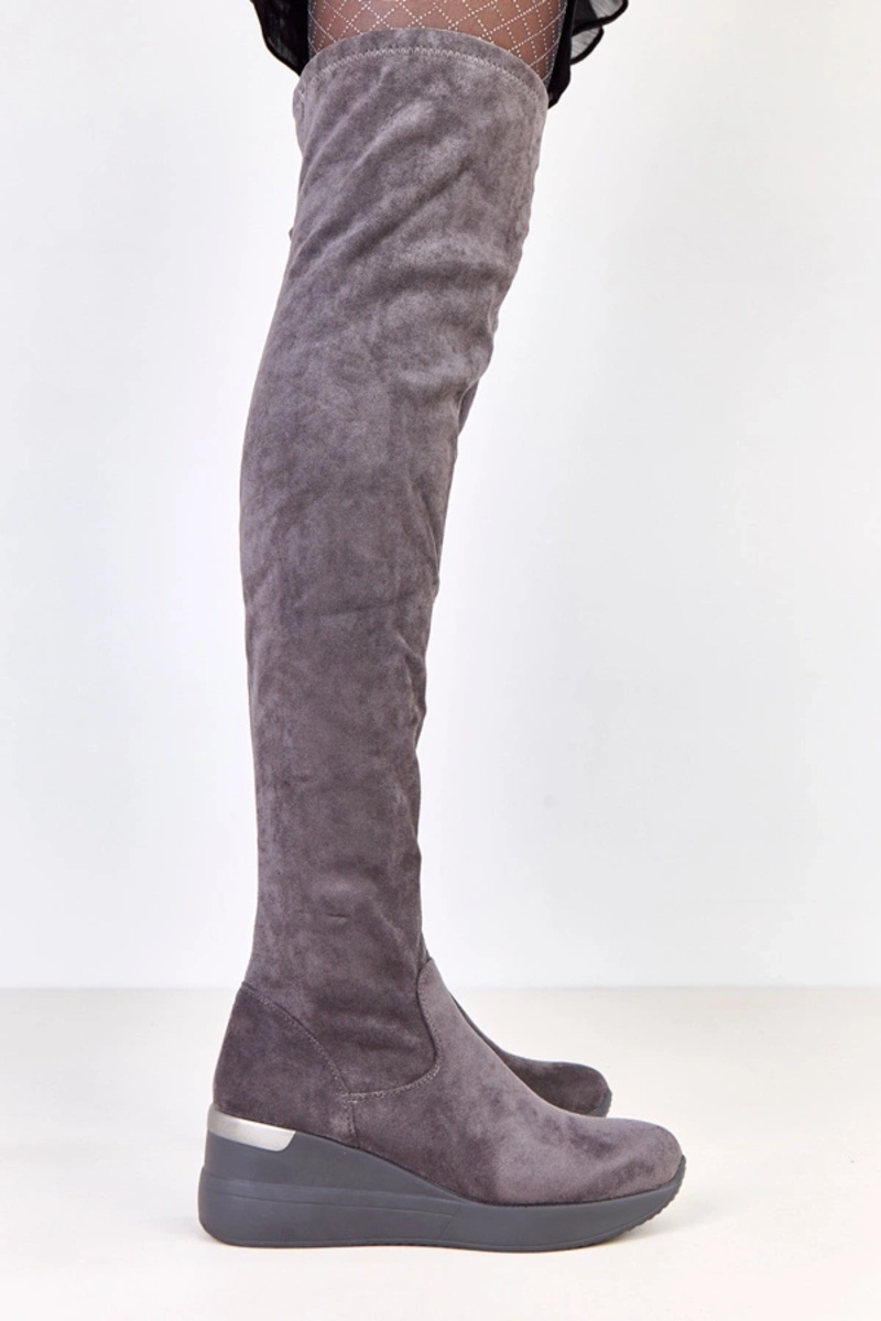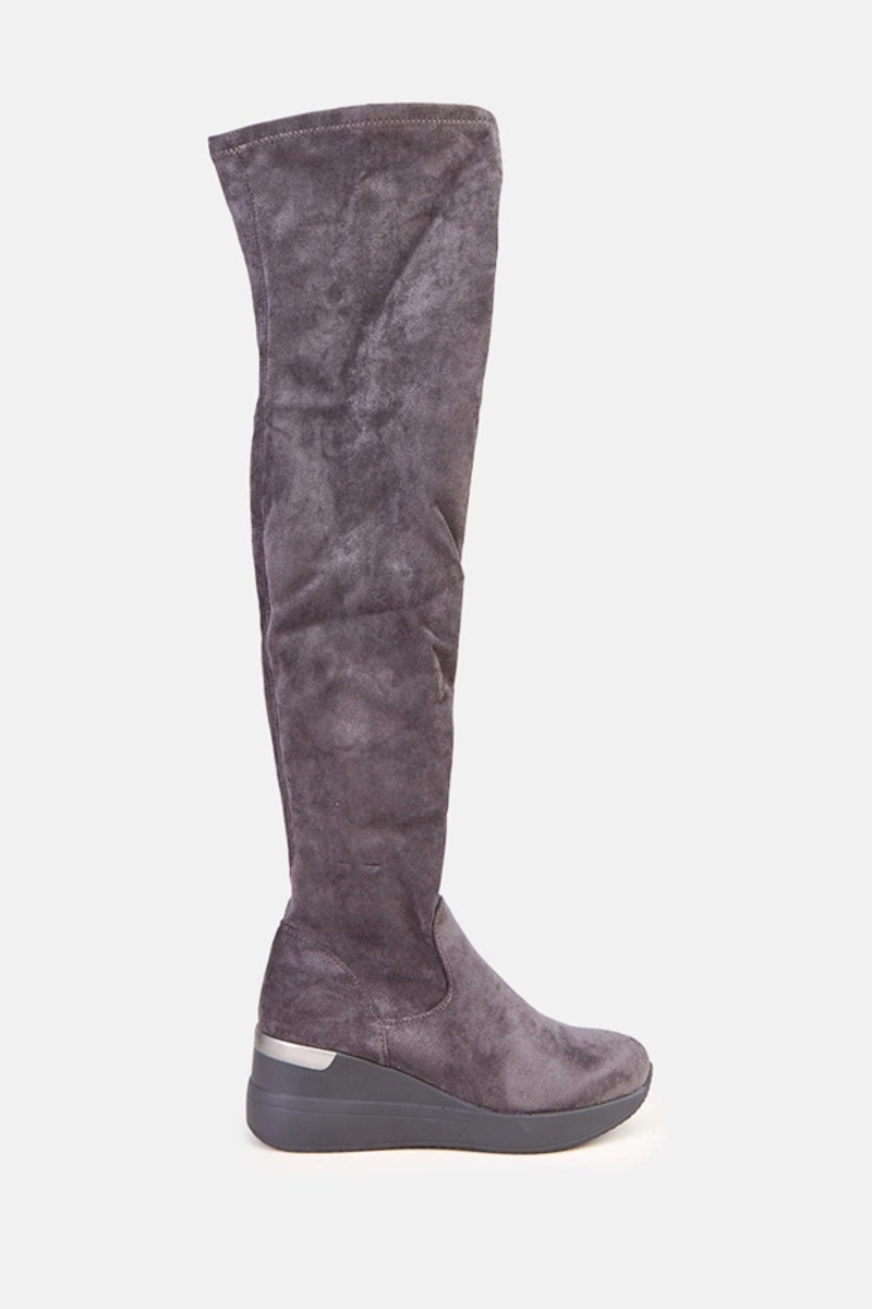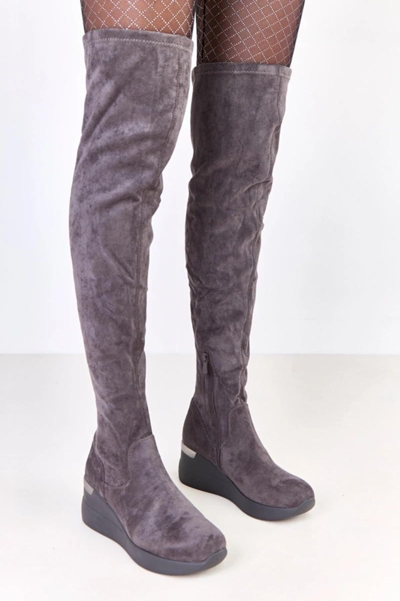 Pelēki mākslīgā zamša zābaki uz platformas Roland