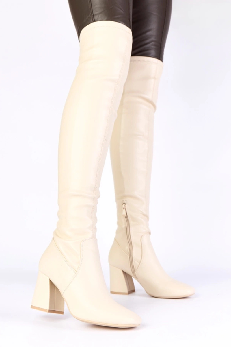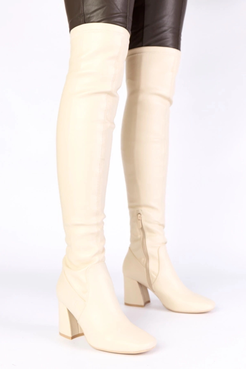 Smilšu krāsas garie zābaki virs ceļgala uz papēža Louna