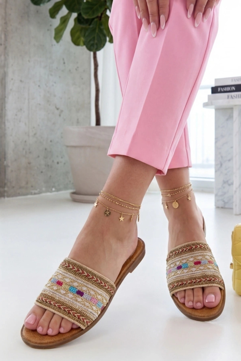 Smilšu krāsas čības ar krāsainu austas detaļu Isabelle