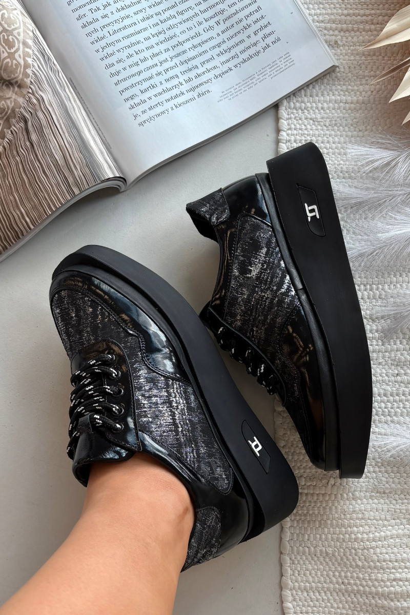 Ādas sieviešu kurpes ar šņorēm un platformu Artiker 57C2043, melnā un sudraba krāsā