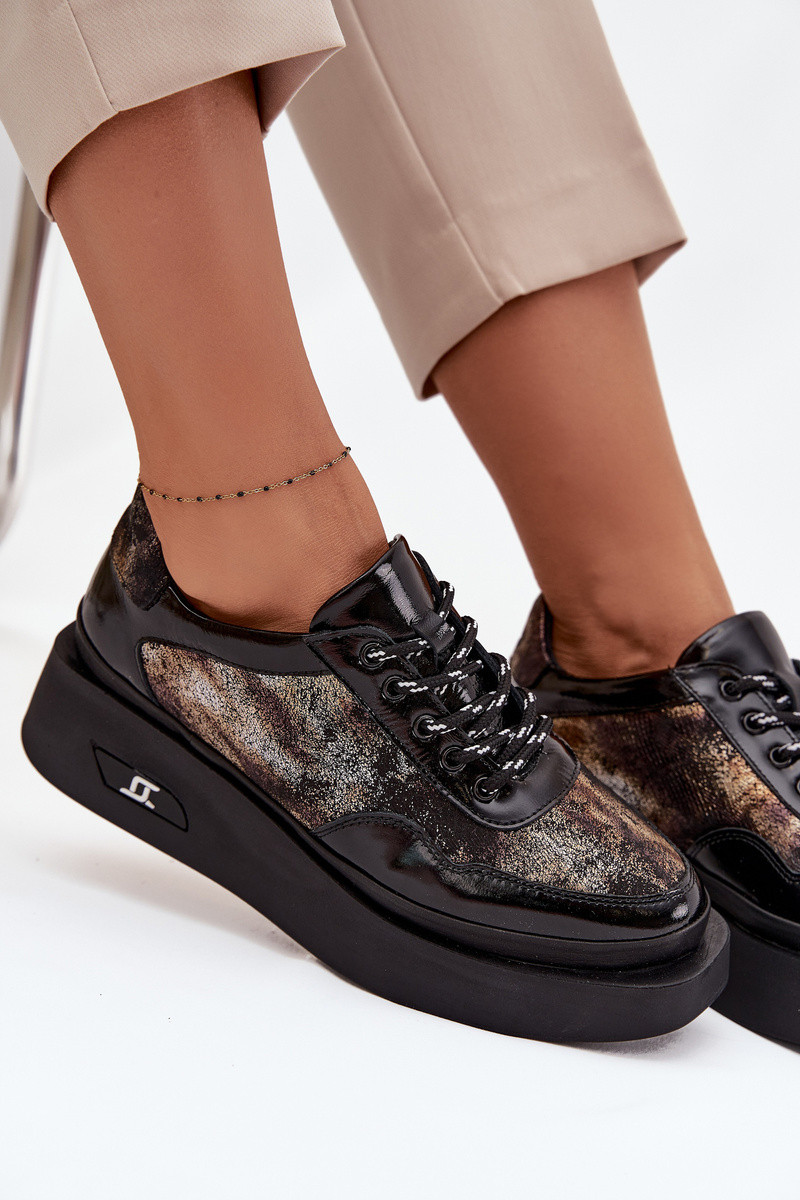 Ādas sieviešu kurpes ar šņorēm un platformu Artiker 57C2042, melnā un zelta krāsā