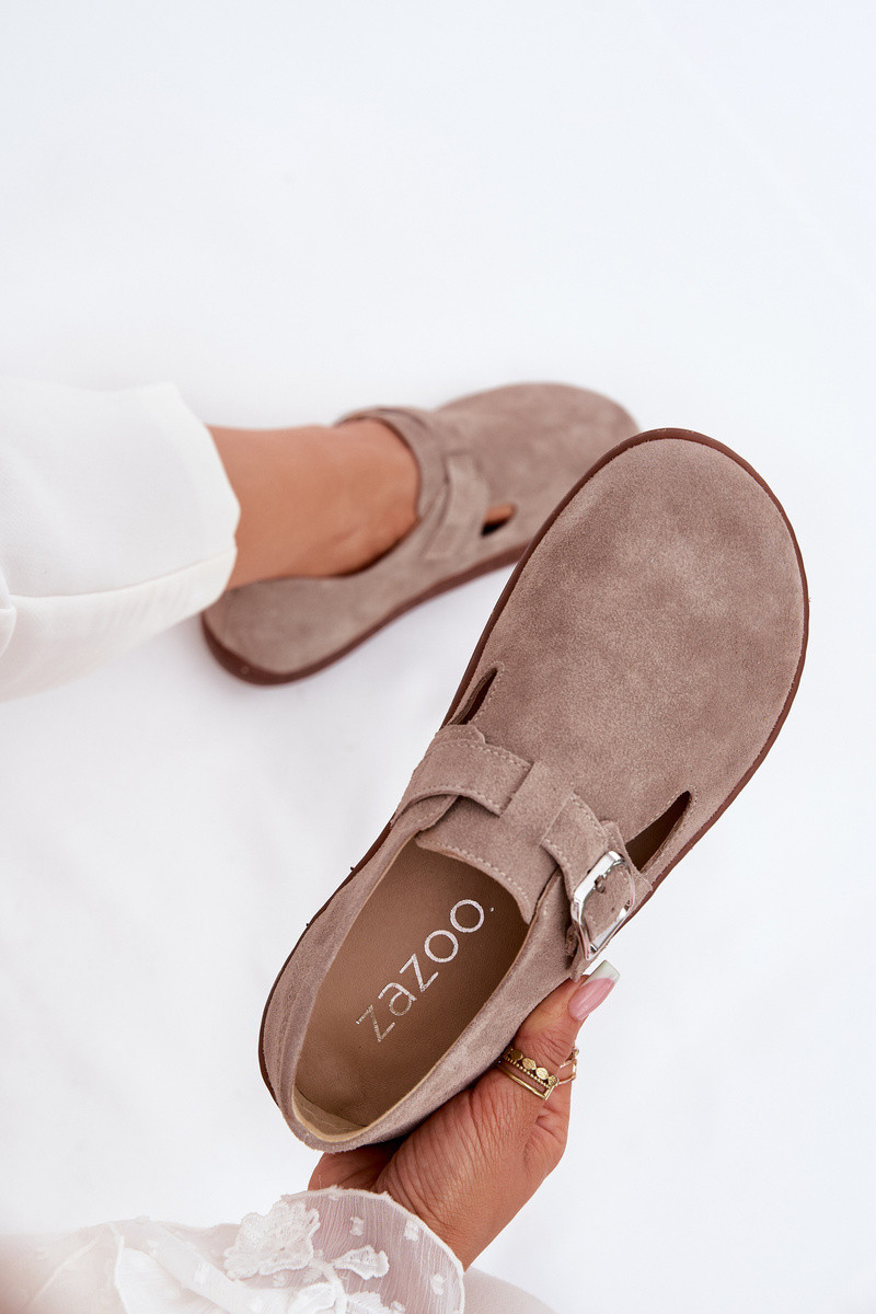 Zamša zābaki Barefoot sievietēm ar sprādzēm, smilšu krāsā Zazoo N1261