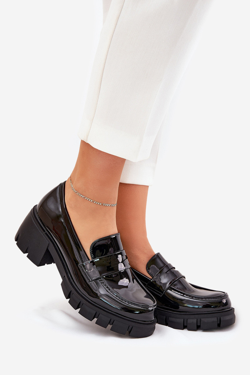 Melni sieviešu apavi Felonith ar lakota efekta masīviem papēžiem