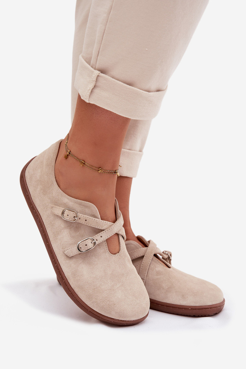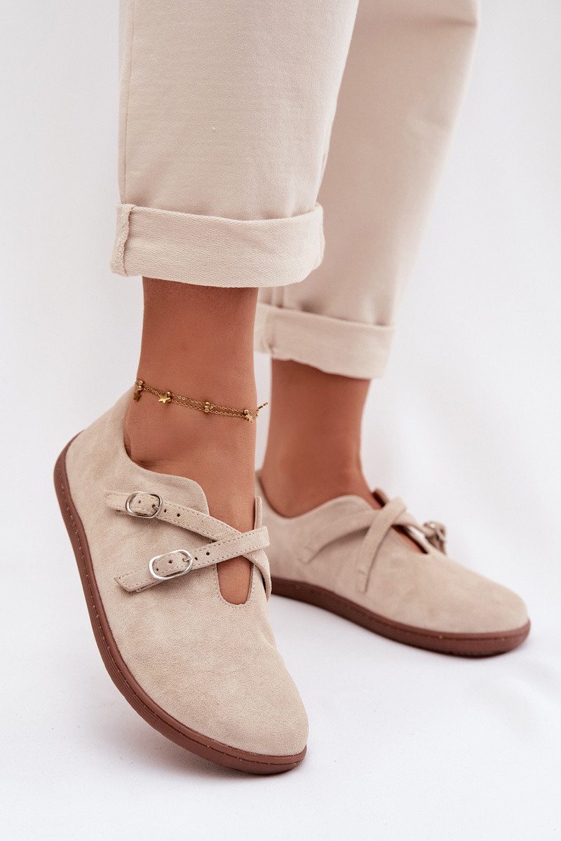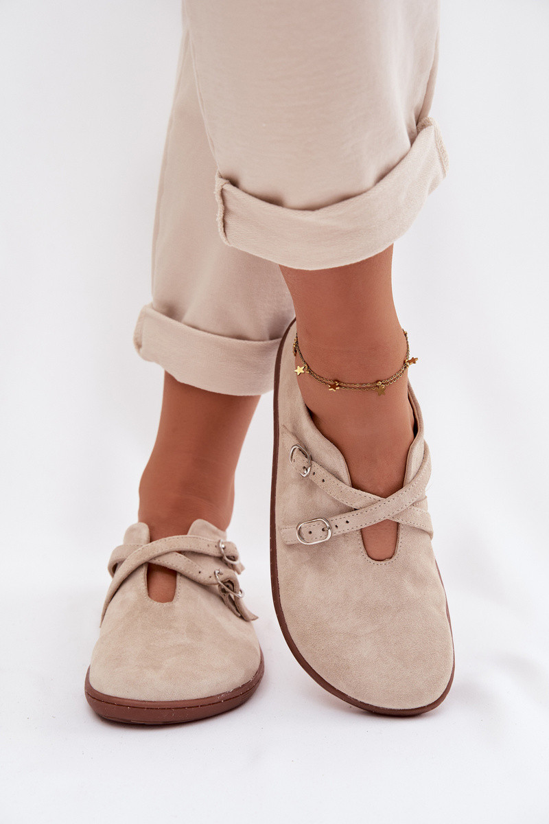 Ādas zamša sieviešu "Barefoot" apavi ar lentītēm Zazoo N1271, ziloņa kaula krāsas
