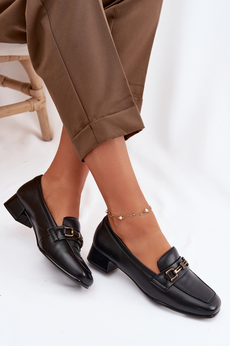 Sieviešu ādas apavi ar ornamentiem Vinceza 39978 melnā krāsā
