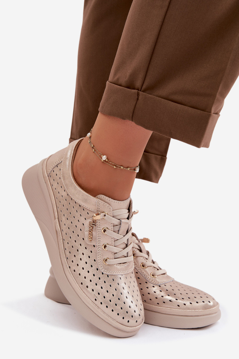 Ādas caurumu apavi Vinceza 79603 zelta krāsā