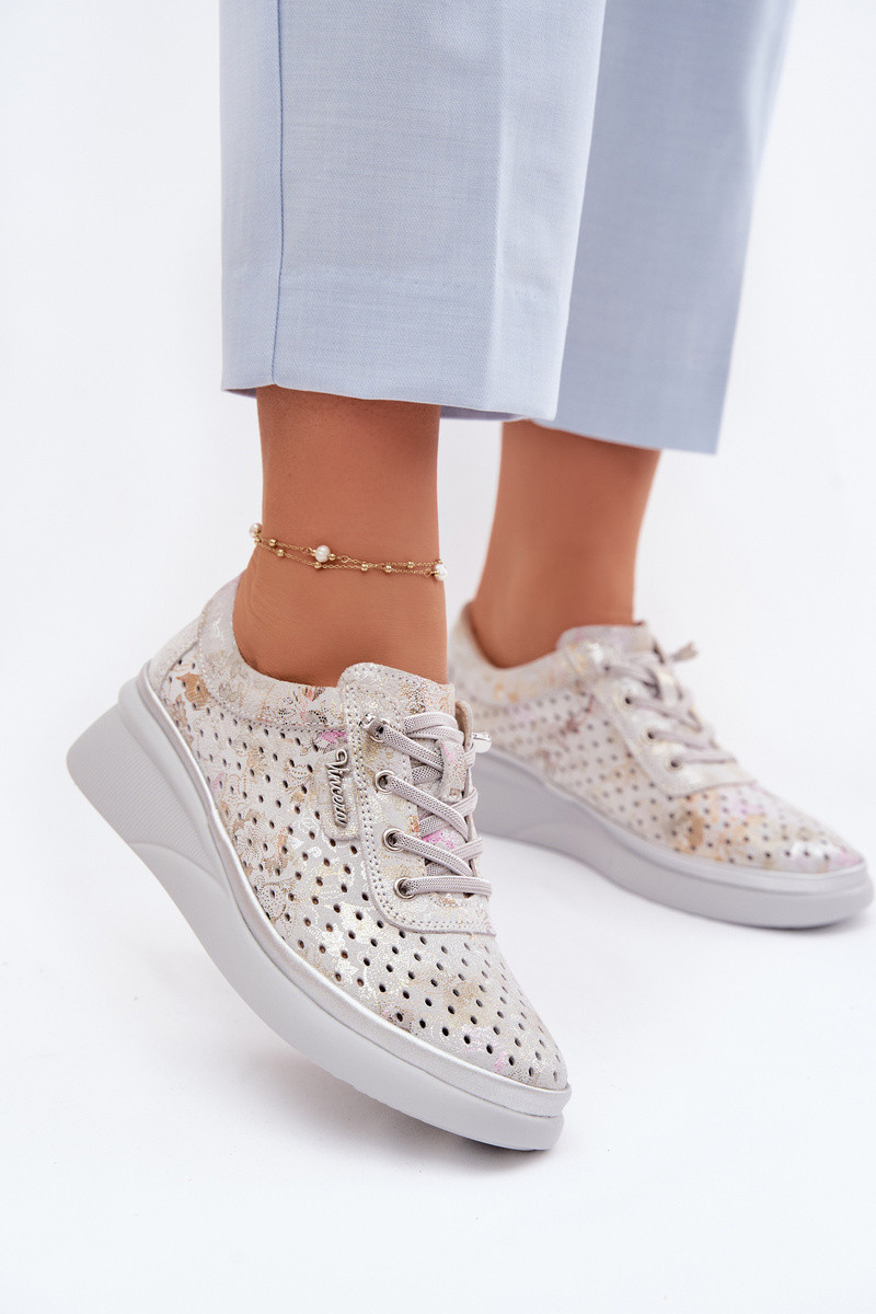 Caurumu zomšu apavi Vinceza 79603 pelēkā krāsā