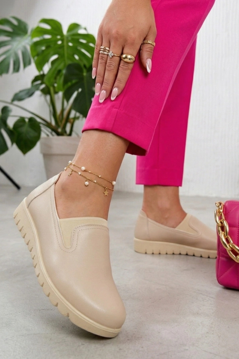 Smilšu krāsas ievelkamie puszābaki ar zemu papēdi Isolde