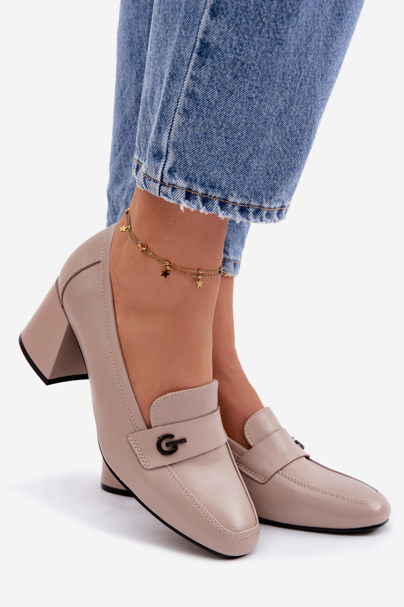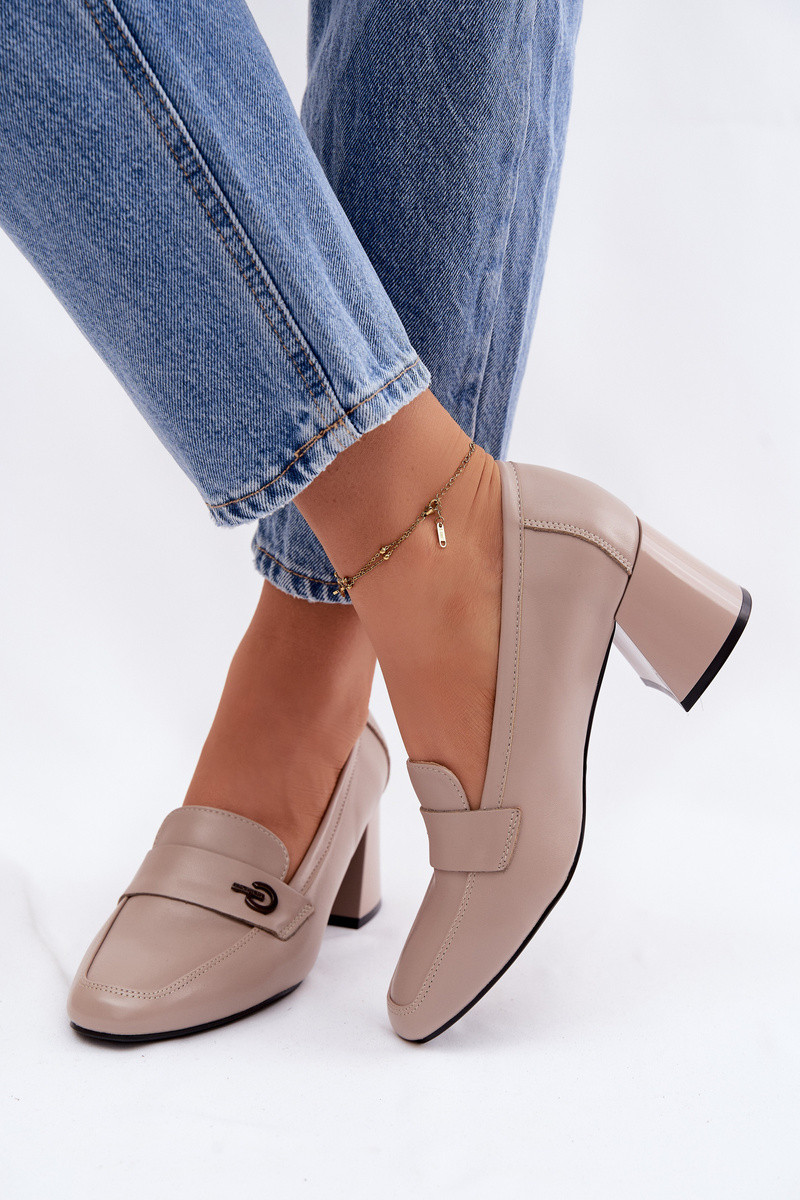 Ādas sieviešu kurpes ar papēžiem Vinceza 18119 smilšu krāsā