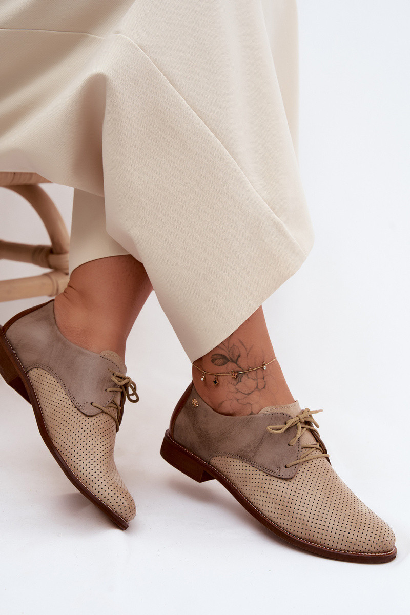 Elegantiški smilšu un brūnu sieviešu ādas apavi ar auklām Zazoo 4238