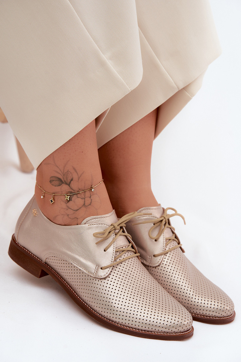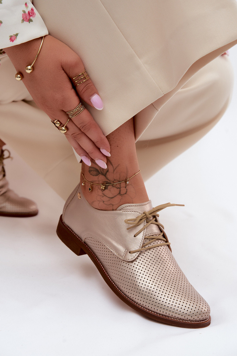 Elegantiški zelta krāsas sieviešu ādas apavi ar auklām Zazoo 4238