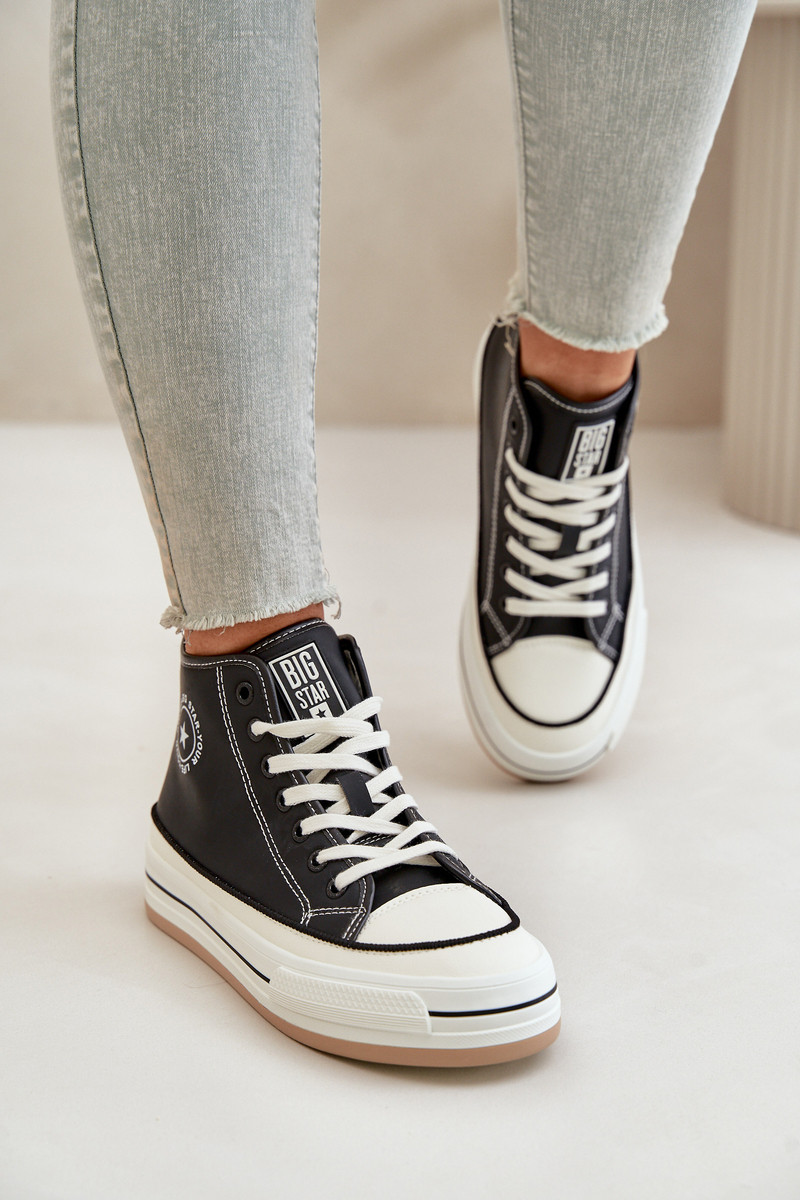 Siltinātas brīvā laika kurpes ar platformu no mākslīgās ādas Big Star OO274062 melnā krāsā