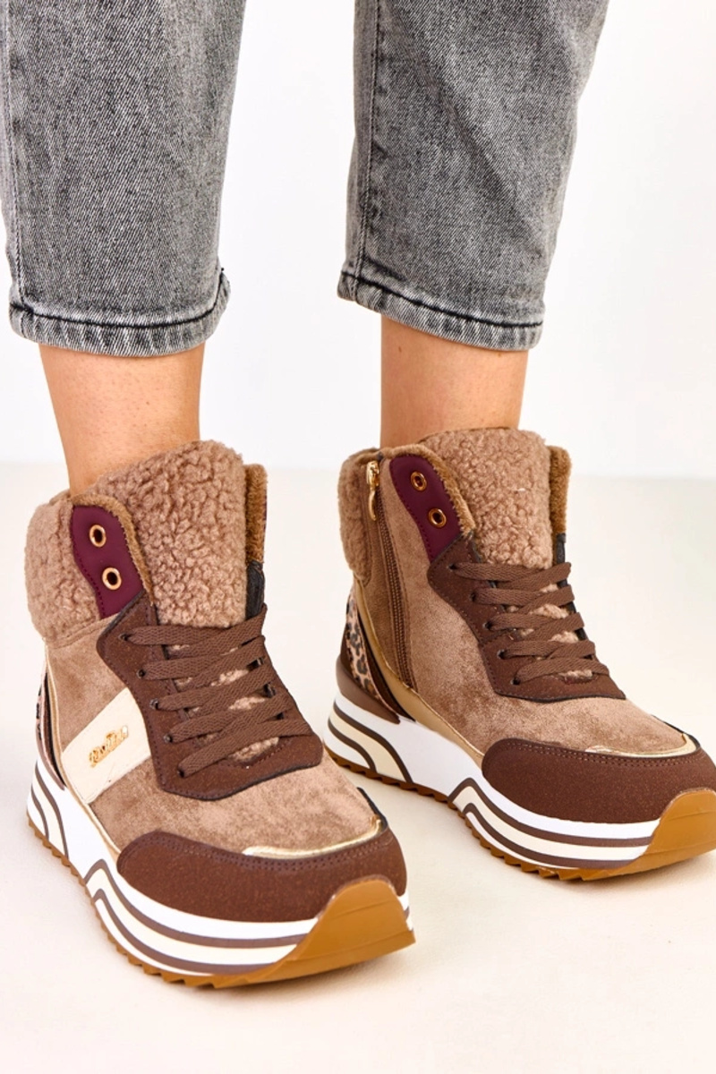 Brūnās augstās siltās sporta kurpes ar kažoku Mirasen